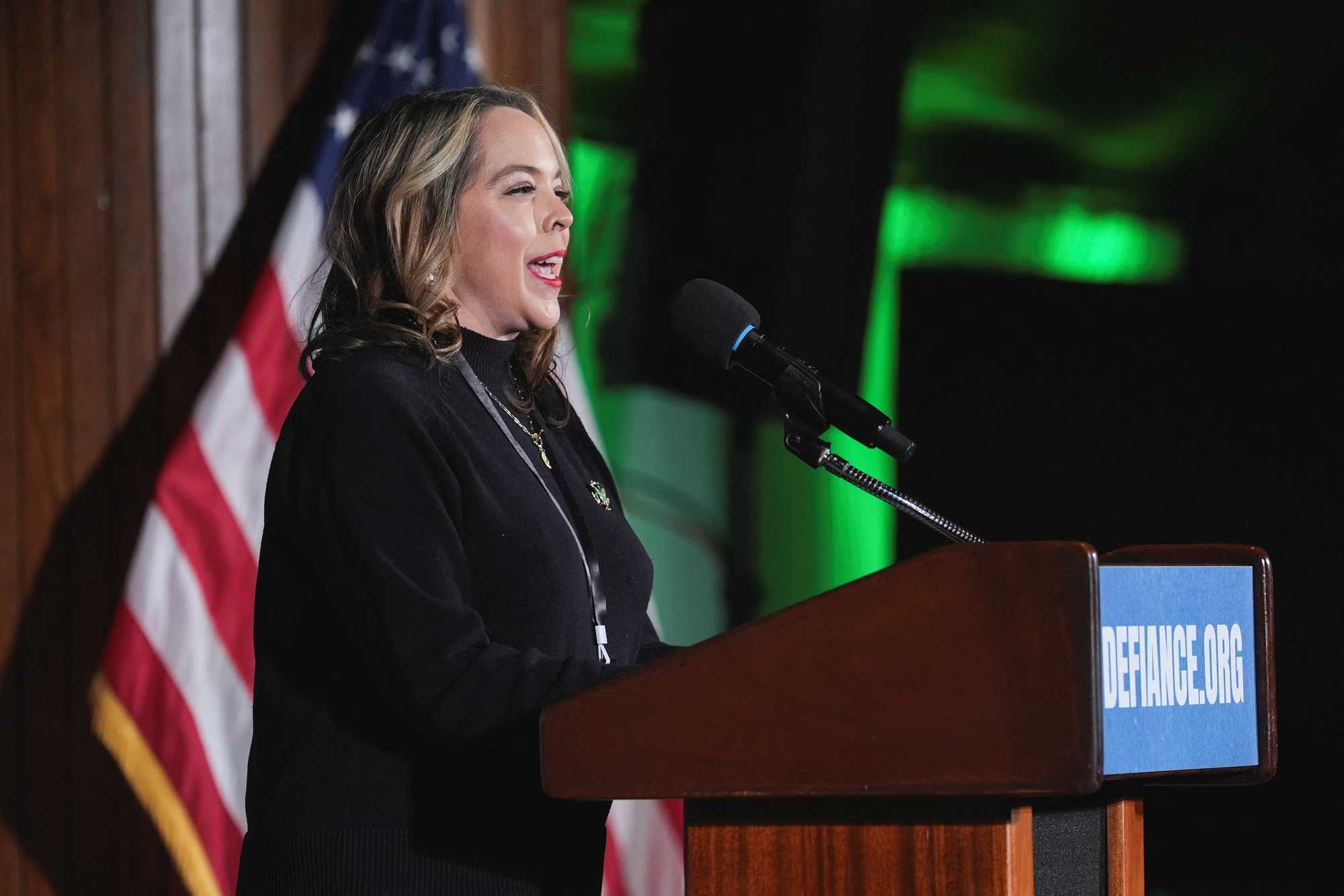 Olivia Troye speaks during the "State of the Swamp," a Democratic-led counter-programming ahead of President Donald Trump's State of the Union address at the National Press Club in Washington, D.C., U.S., February 24, 2026. REUTERS/Leah Millis