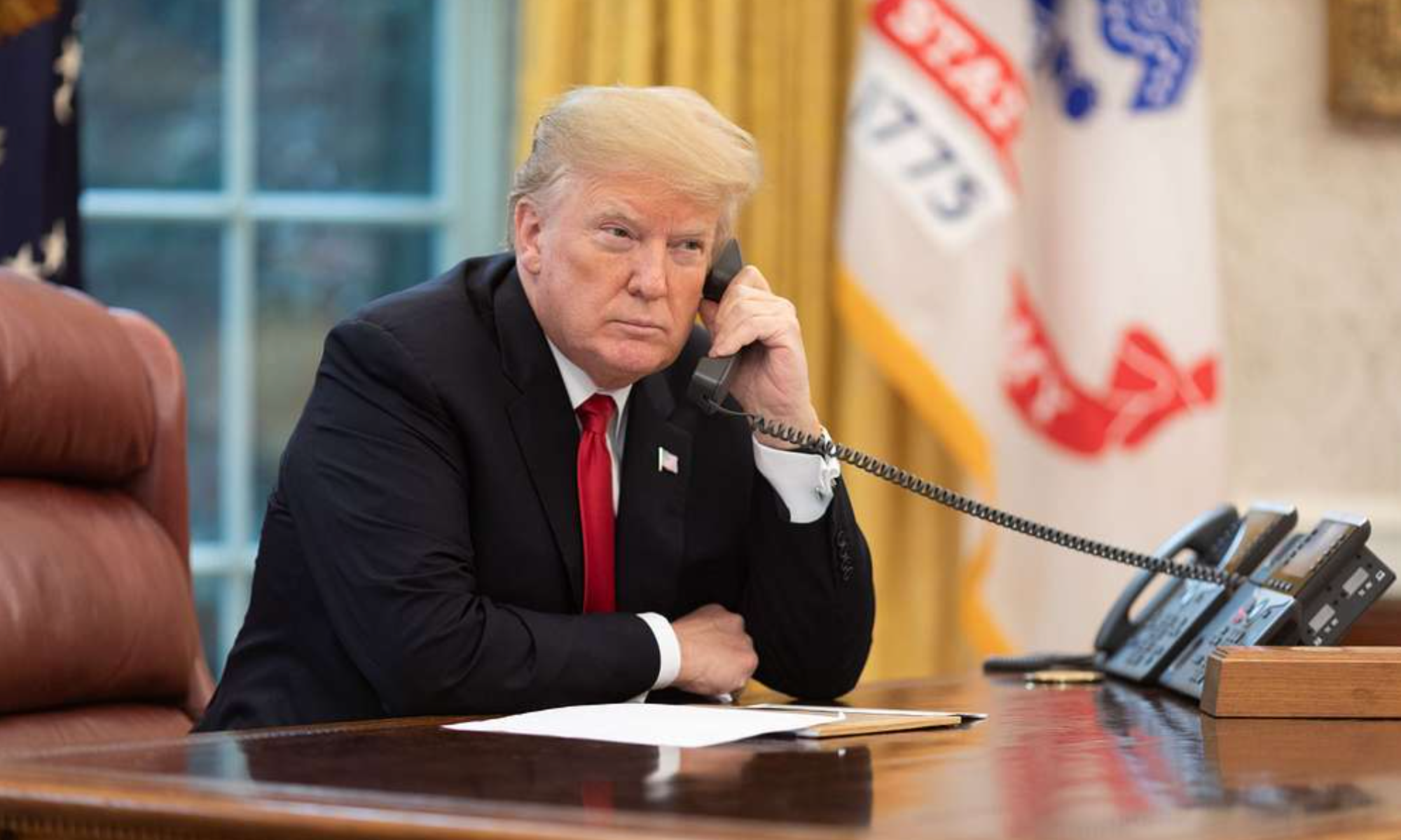 President Donald J. Trump speaks on the phone in the Oval Office Wednesday, Nov. 14, 2018, with Federal Emergency Management Agency Administrator Brock Long to receive the latest update on the devastating wildfires in California. (Official Whte House Photo by Joyce N. Boghosian)