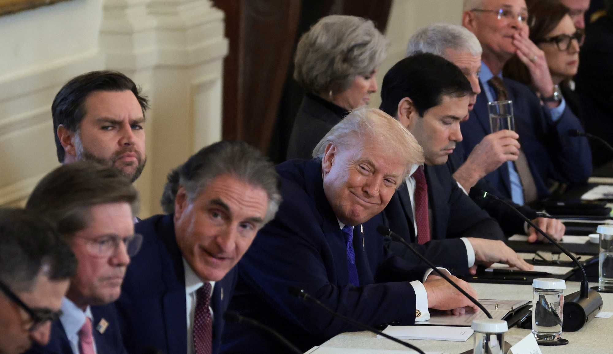 U.S. President Donald Trump, Vice President JD Vance, Secretary of State Marco Rubio and U.S. Secretary of the Interior Doug Burgum attend a meeting with oil industry executives, at the White House in Washington, D.C., U.S., January 9, 2026. REUTERS/Evelyn Hockstein