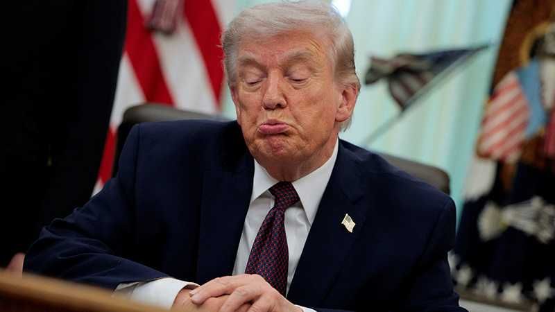 U.S. President Donald Trump reacts as he speaks during the signing ceremony for an executive order on mail ballots, in the Oval Office of the White House in Washington, D.C., March 31, 2026. REUTERS/Evan Vucci