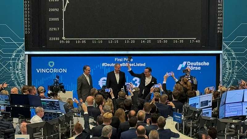 Bell ringing ceremony for German defence technology company Vincorion on their Frankfurt market debut, in Frankfurt, Germany, March 20, 2026. Picture taken with a mobile phone. REUTERS/Tilman Blasshofer