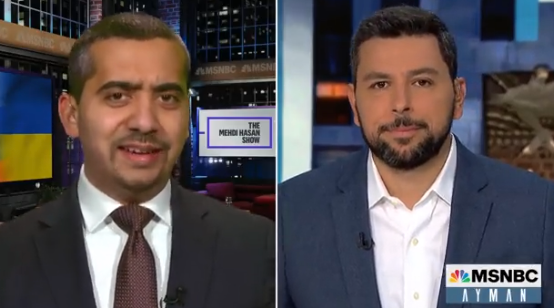 Hasan told his colleague Ayman Mohyeldin, “Some of the media coverage of the conflict in Ukraine has been kind of off. We have reporters and pundits making some rather awful remarks about the nature of this conflict and these refugees versus, say, conflicts and refugees in the Middle East.”