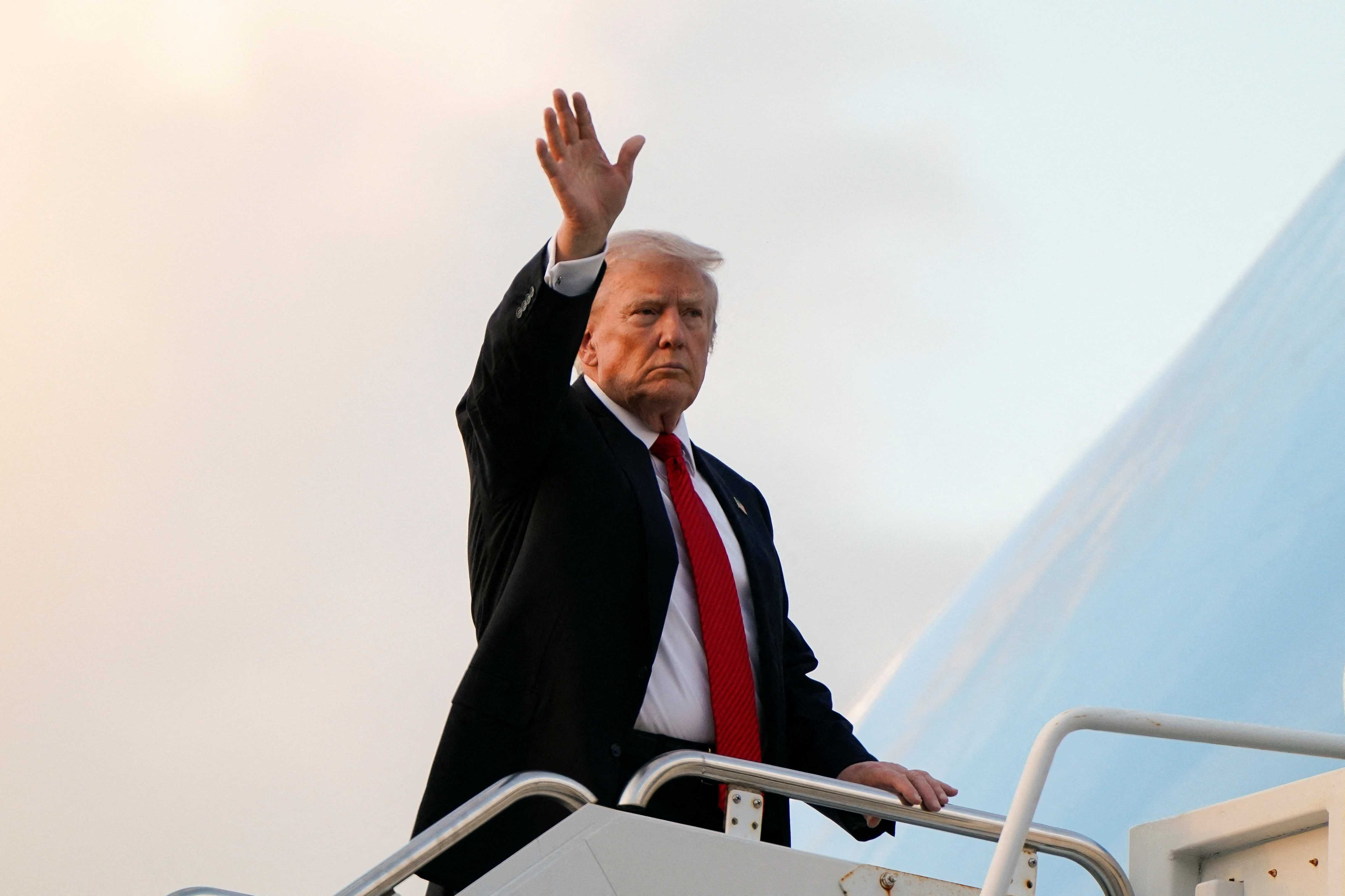 U.S. President Donald Trump waves as he boards Air Force One en route to Washington at Palm Beach International Airport in West Palm Beach, Florida, U.S., November 2, 2025. REUTERS/Elizabeth Frantz