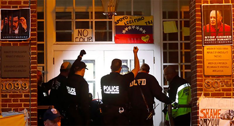 An extraordinary set of events has been unfolding at the Venezuela Embassy in Washington, D.C., ever since the Embassy Protection Collective began living at the embassy with the permission of the elected government of Venezuela on April 10 to protect it from an illegal takeover by Venezuela’s opposition. The actions of the police on the evening of May 13 added a new level of drama.