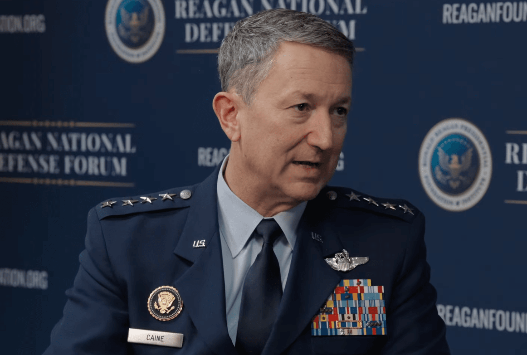 Gen. Dan Caine, Chairman of the Joint Chiefs of Staff (Image: Screengrab via Ronald Reagan Presidential Foundation & Institute / YouTube)