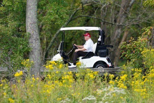 Far-right social media influencer Michael Solakiewicz posted to TikTok on Sunday a video, writing, "President Donald Trump playing golf today at Trump National Golf Club Bedminster! TRUMP 2024!"