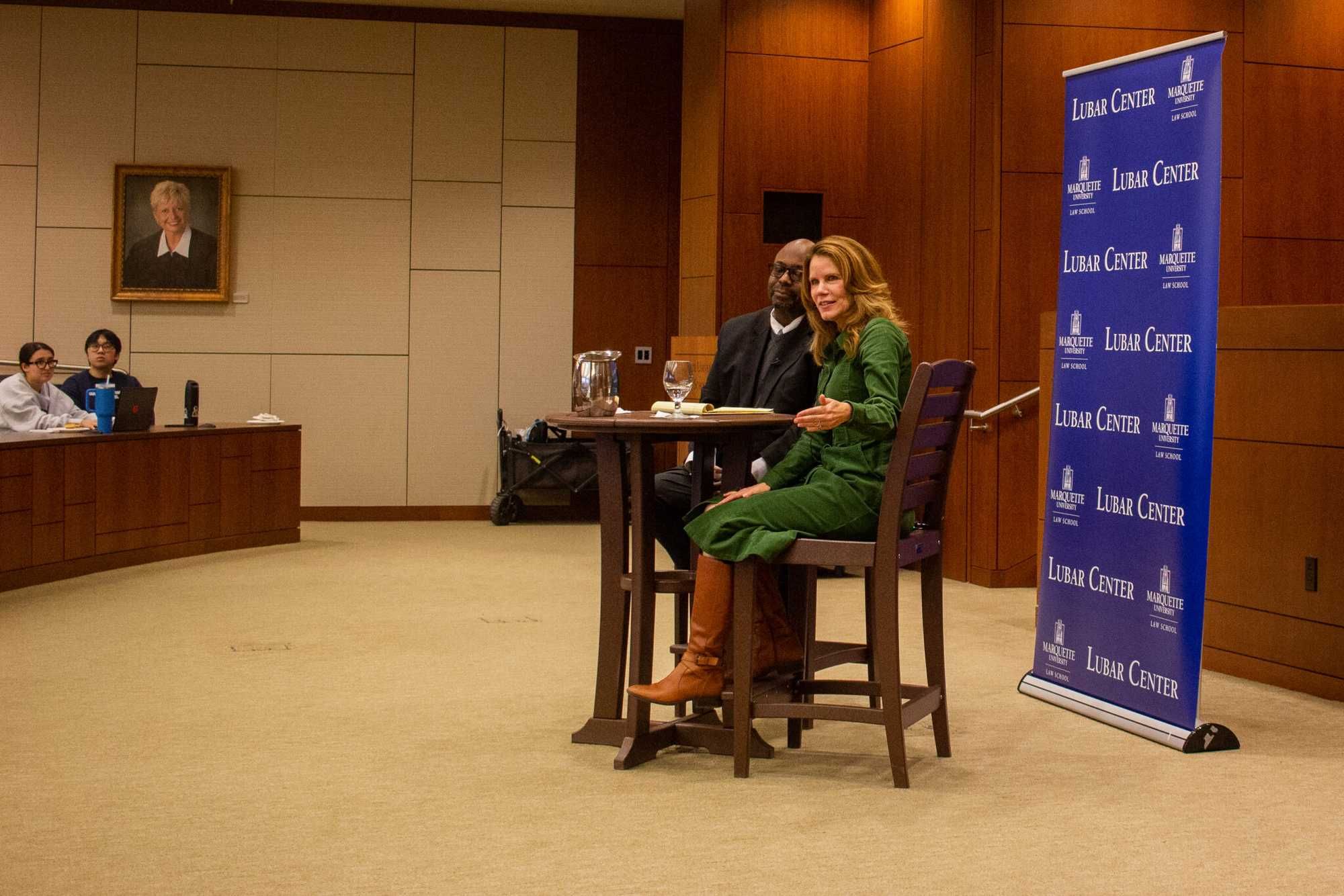 Wisconsin Supreme Court candidate Chris Taylor speaks at a March 18 forum hosted by the Marquette University Law School. (Henry Redman | Wisconsin Examiner)