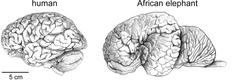 As it turned out, there are many ways to put brains together: Primates like us have more neurons in the cerebral cortex than most other mammals, no matter the size of the brain. A brain can be large but made of relatively few neurons if those neurons are huge, like in an elephant; primate neurons are small, and bird neurons are even tinier, so even the smallest bird brains can hide lots of neurons. But never as many as the largest primate brain: ours.