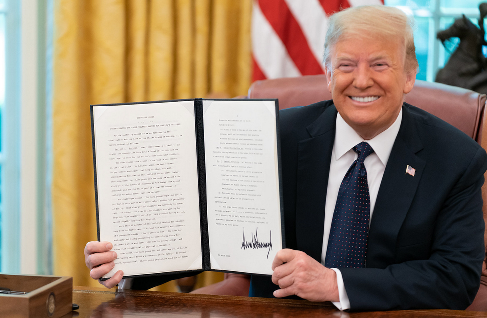 President Donald J. Trump displays his signature after signing an Executive Order. (Official White House Photo by Andrea Hanks)