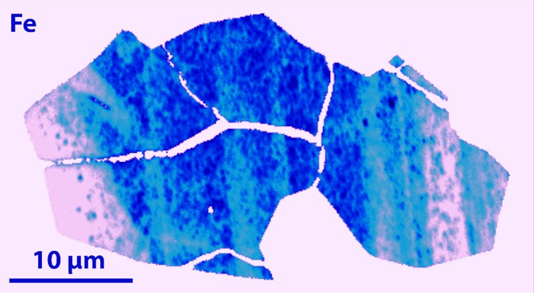 The zircon we studied is 4.45 billion years old. Within it, iron, aluminium and sodium are preserved in abundance patterns like concentric layers, similar to an onion.