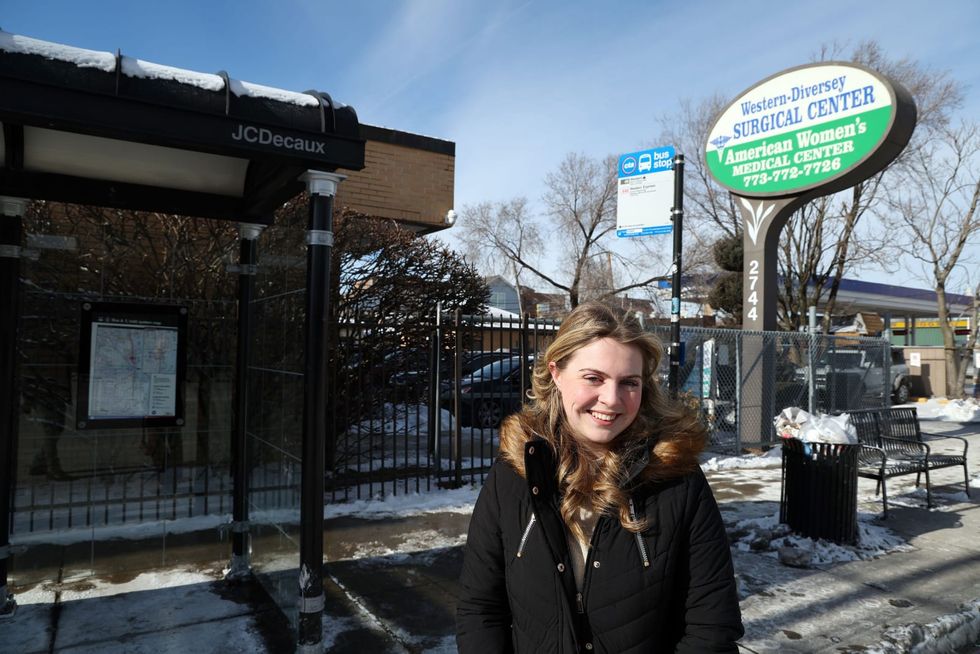 Hope Miller outside an abortion clinic on North Western Avenue in Chicago, Jan. 17, 2024, where she was passing out leaflets. - Terrence Antonio James/Chicago Tribune/TNS