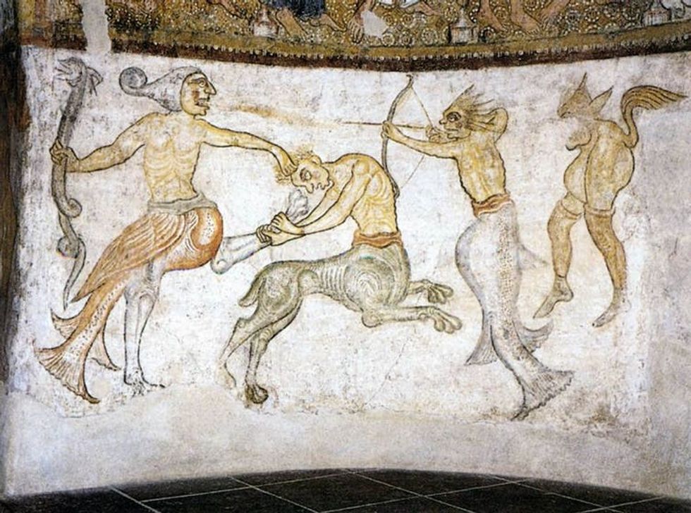 Thirteenth-century frescoes of demons. St. Jacob's Church, Kastelaz