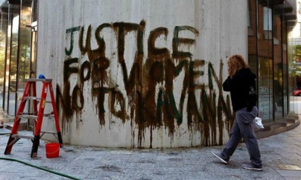 For many, as disturbing as her cowardice was her craven hypocrisy. From Twitter: "If I understood Susan Collins correctly, it's important to listen to women, then avoid eye contact and back away slowly until nothing changes...'Me too matters,' Susan Collins said, licking the blood from the knife she just stuck in its back...Susan Collins just gave a clear and direct 'you are meaningless, and you do not matter' to every woman and survivor in America." We will not let her forget it. In an NPR interview after her vote, she whined she'd felt "bullied" by all those tearful survivors - in Collinspeak, "special interests" - telling their painful stories. She ain't seen nothing yet.
